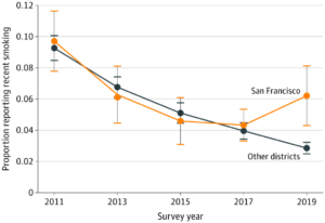 Shortly after this report was published, Yale University released the first real world study on the effect of flavour bans on youth smoking prevalence. In the City of San Francisco flavoured vaping products were banned in 2018. Since then, smoking has doubled among high school students in the area relative to trends in districts without the ban, even when adjusting for individual demographics and other tobacco policies. This study was funded by the US Food and Drug Administration’s Center for Tobacco Products. There was no industry involvement in the study. Read the study here.